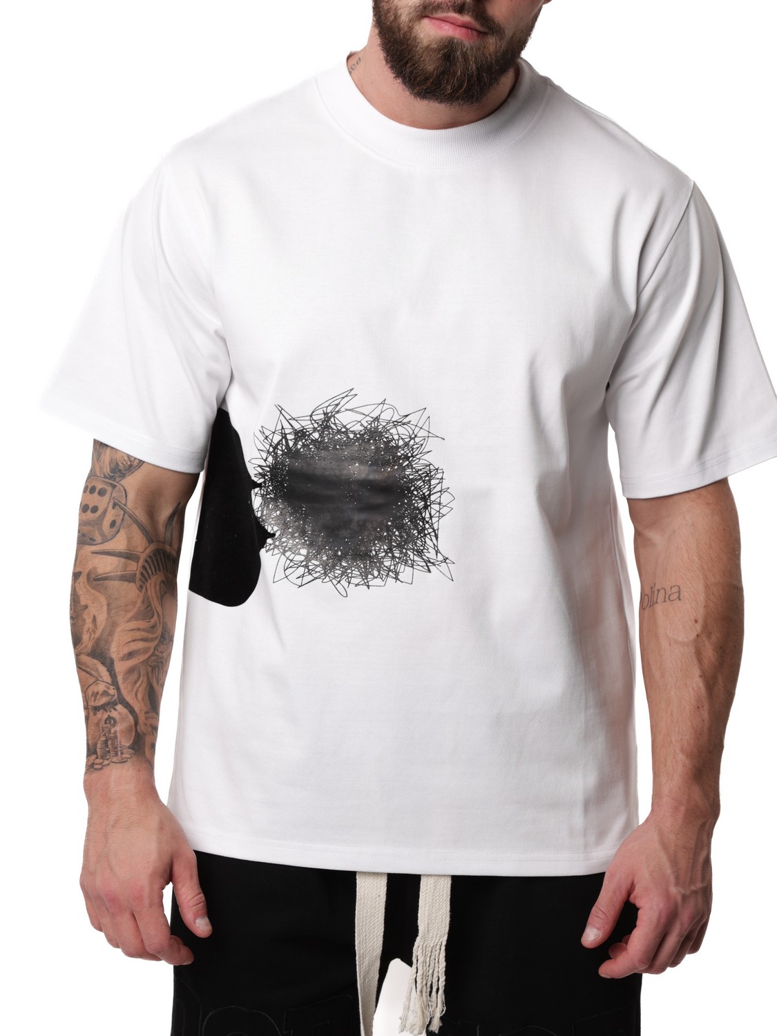 Стильная оверсайз футболка для мужчин станет настоящим украшением вашего гардероба! Эта вещь создана из 100% премиального хлопка, что обеспечивает ей невероятную мягкость, комфорт и долговечность. Плотная фактура ткани прекрасно сохраняет форму даже после множества стирок, а дышащие свойства материала делают ее идеальной для теплых летних дней или занятий спортом. Эта модель -  произведение искусства, сочетающее в себе модный стиль и оригинальный дизайн. Высокотехнологичный принт с необычными рисунками, надписями добавляет яркости и индивидуальности вашему образу.  Выразите свою уникальность через одежду, которая говорит за вас!  Футболка порадует своей практичностью: легкая ткань дарит комфорт в жару, а плотная структура обеспечивает тепло в прохладное время года. Подходит не только для спорта или отдыха дома, но также станет отличным выбором для праздничного наряда благодаря своему стильному дизайну.